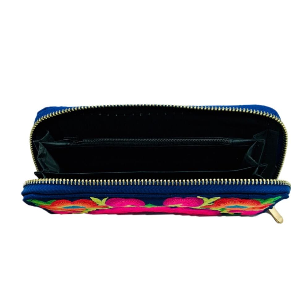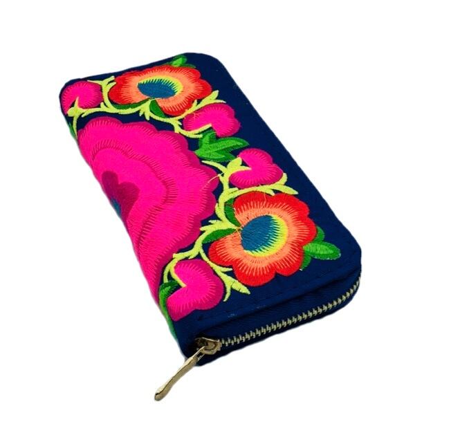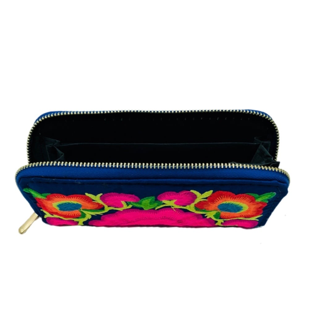 ◆商品名◆ メキシコ 刺繍 ラウンド長財布 花柄ブルー
