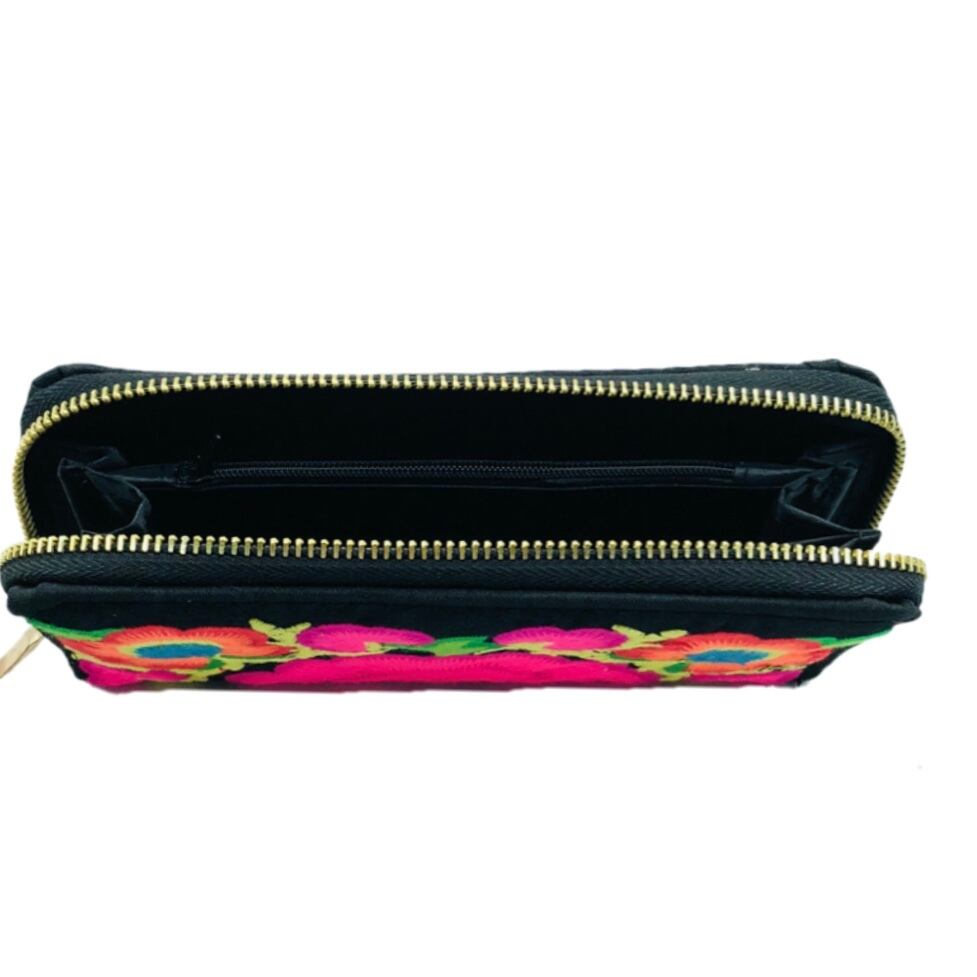 ◆商品名◆ メキシコ 刺繍 ラウンド長財布 花柄ブラック