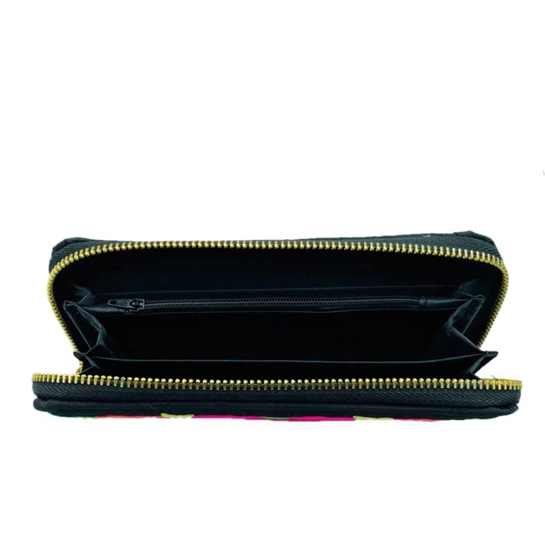 メキシコ 刺繍 ラウンド長財布 花柄ブラック